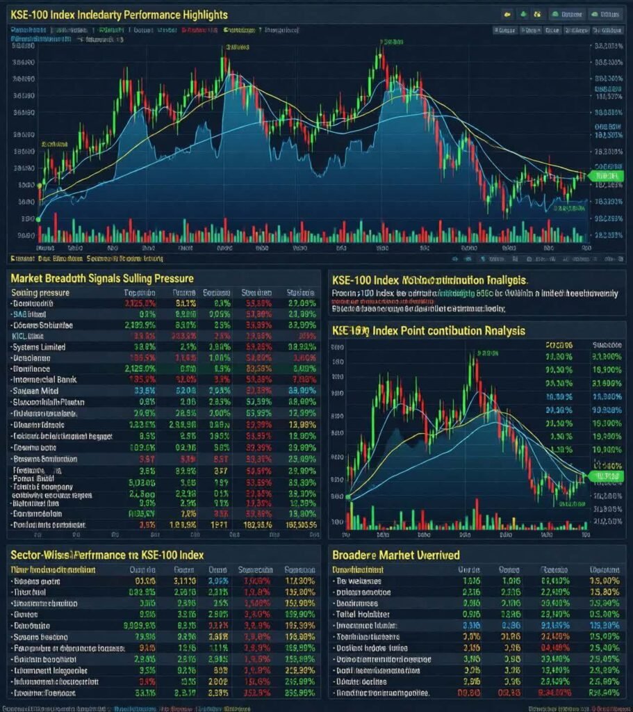 The KSE-100 Index extended its corrective phase on Monday, closing sharply lower as heavyweight sectors including commercial banks, oil & gas exploration, cement, and fertilizers came under selling pressure. Investor sentiment remained cautious despite strong year-to-date gains, leading to profit-taking across most index constituents.