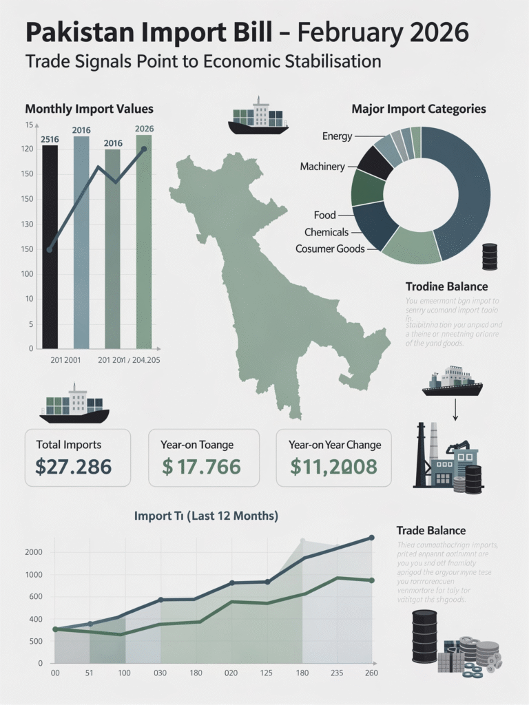 Pakistan Import Bill February 2026 has emerged as a closely watched indicator of the country’s evolving economic trajectory. The latest trade data highlights a period of stabilisation in external accounts, even as sector-specific trends reveal shifting consumption patterns, industrial priorities, and investment sentiment.
